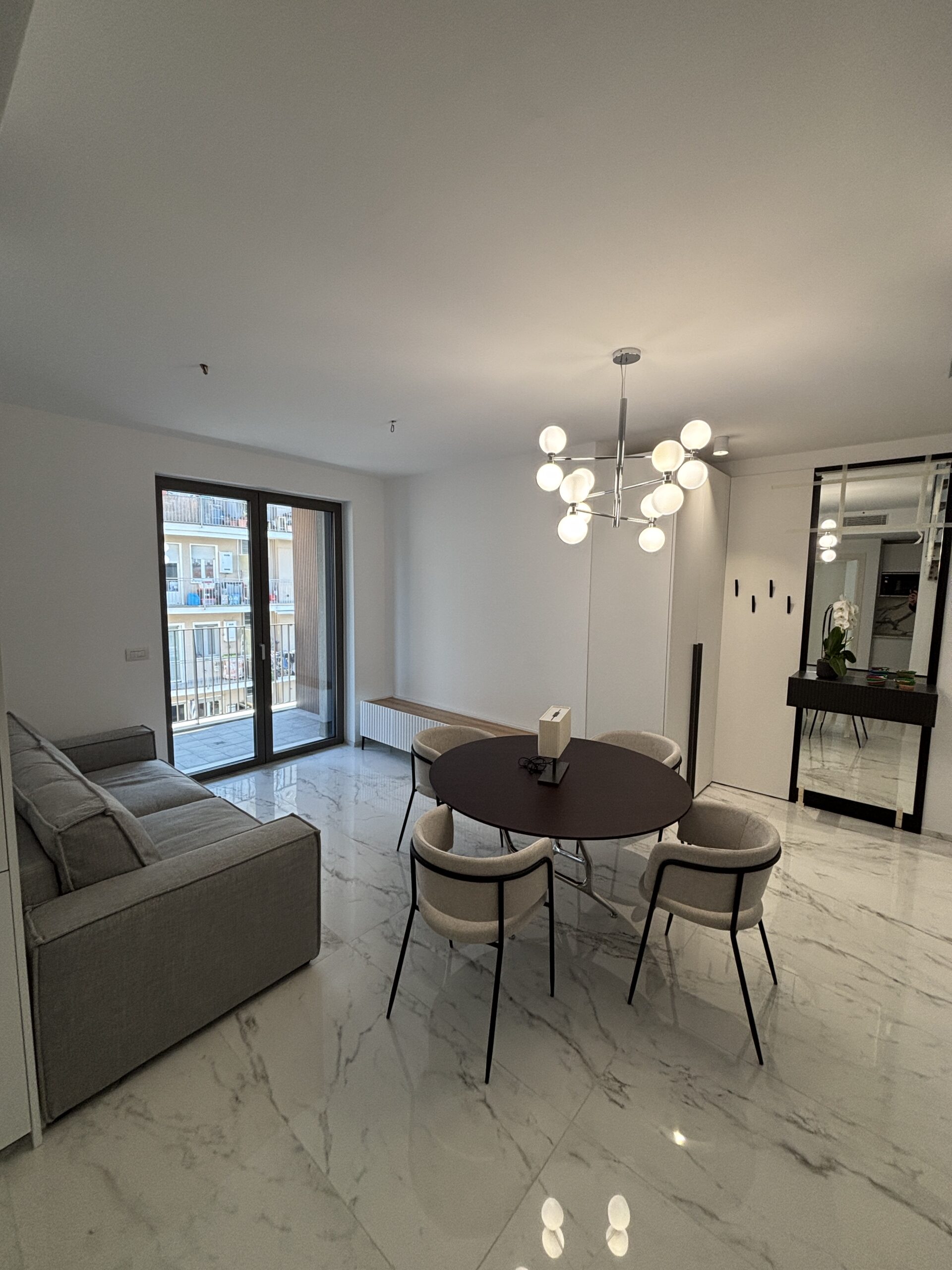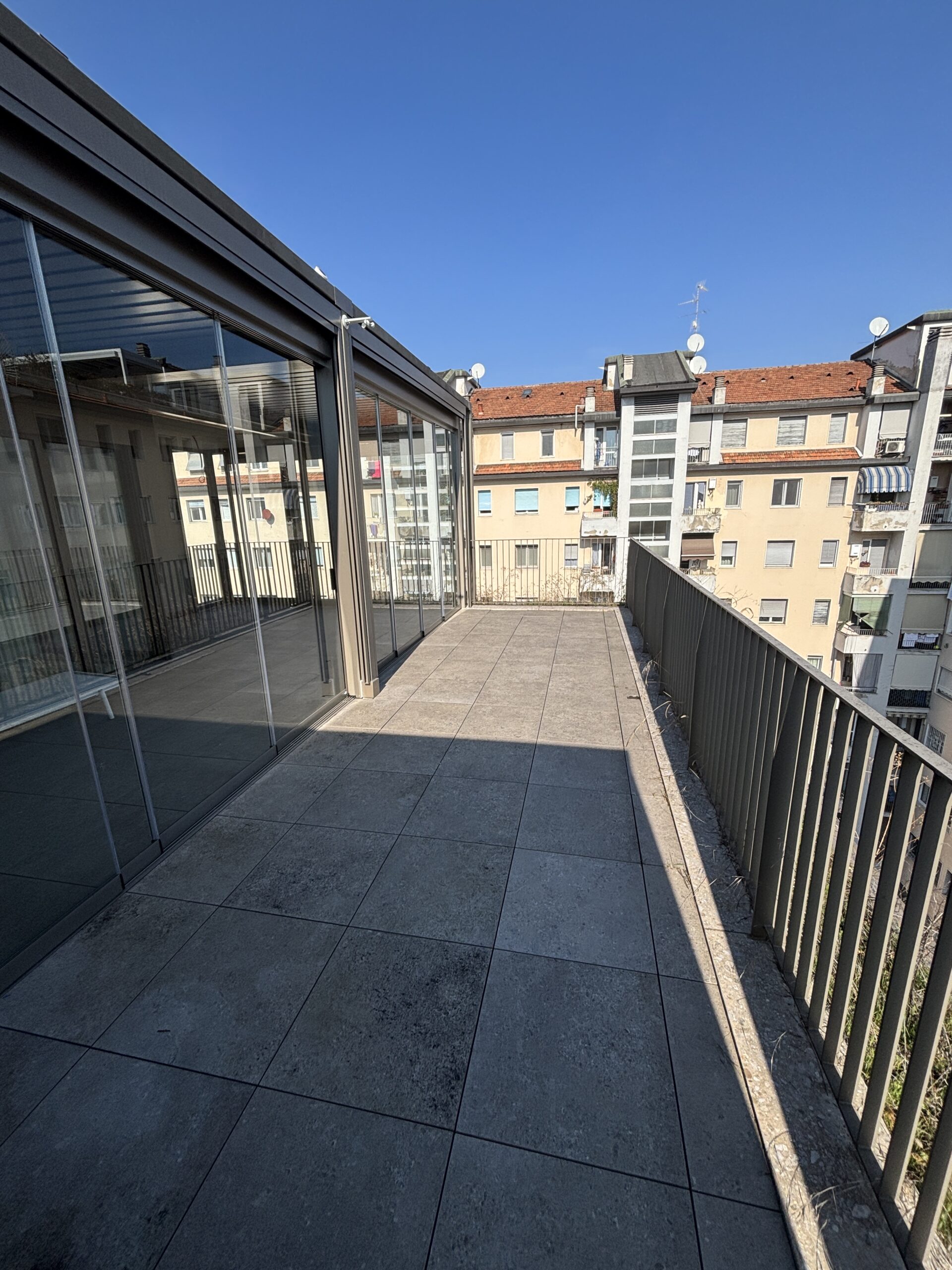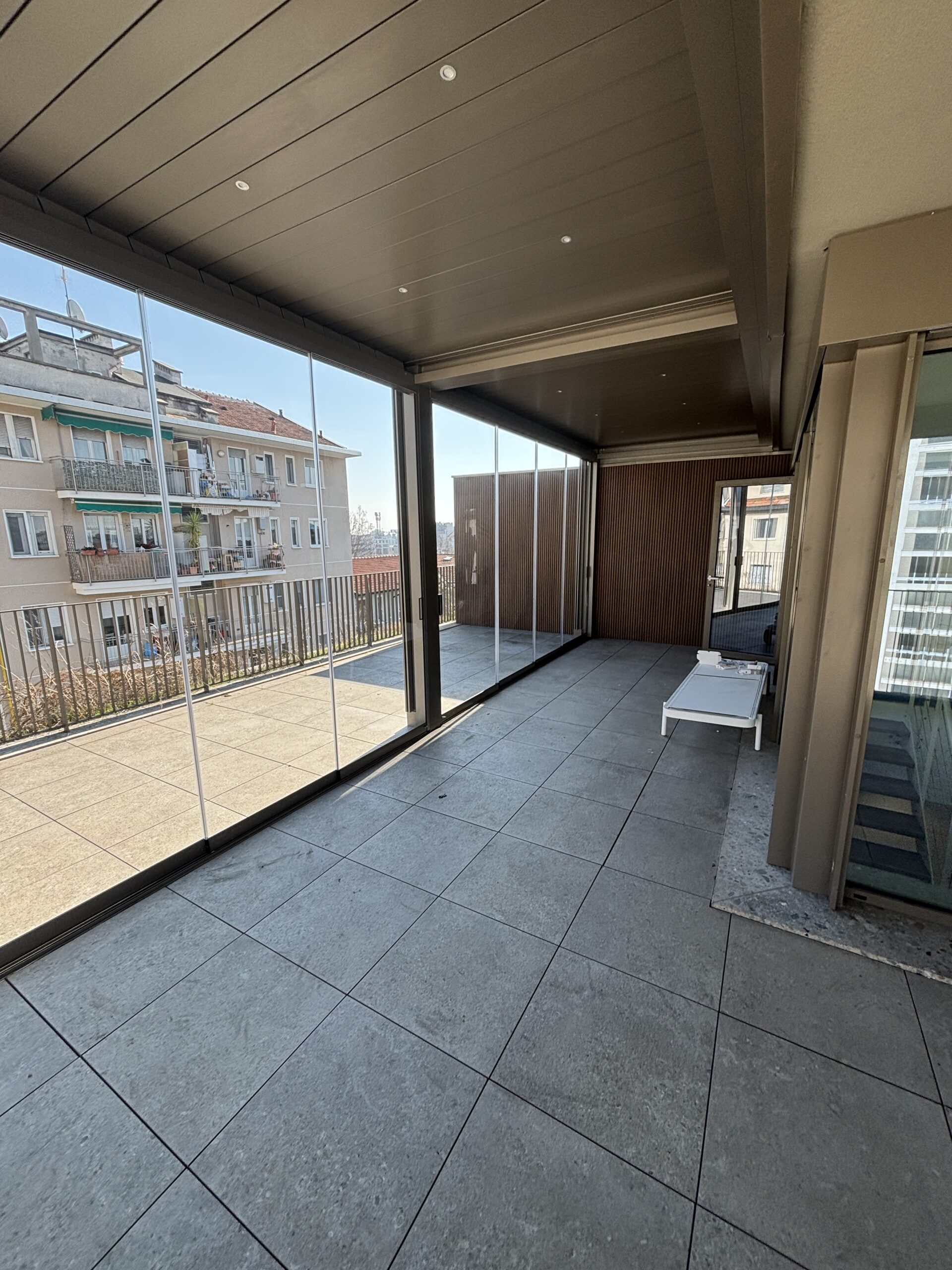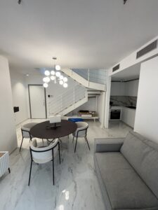 In complesso di nuova realizzazione, disponiamo di attico e super attico composto da ingresso, ampio soggiorno, cucina, camera, bagno, terrazzo e serra con veranda automatica. Finiture di pregio, arredato e corredato, aria condizionata, piscina, palestra e bagno turco condominali. Box. Solo referenziati.